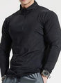 Manfinity Dauomo Men Spring And Summer Solid Color Zipper Half Placket Stand Collar Long Sleeve Casual T-Shirt