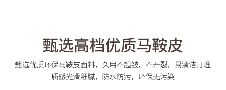 Select high-quality environmentally-friendly saddle leather fabric, which will not wrinkle and crack after long-term use and is easy to clean and take care of.