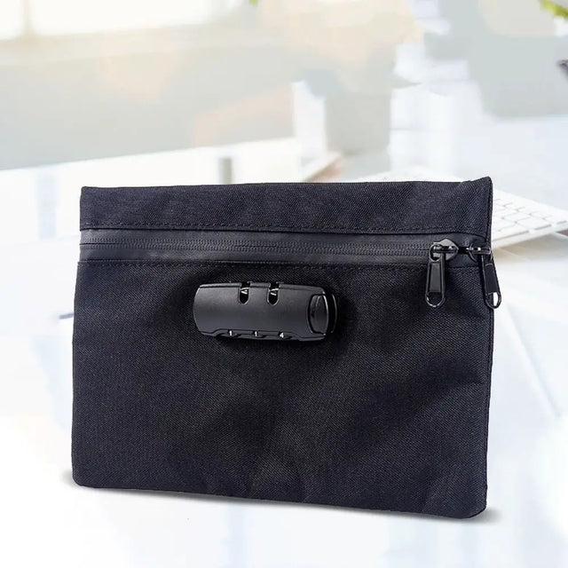 Portable Money Bag With Lock Black Locking Accessories Pouch Security Bag for Cash Combination Lock with Zip Document Bag Travel