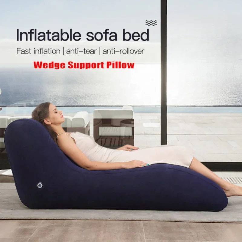 Portable S-shaped Love Position Labor-saving Sitting Inflatable Sofa Bed Yoga Chaise Lounge For Garden Bedroom Folding Furniture