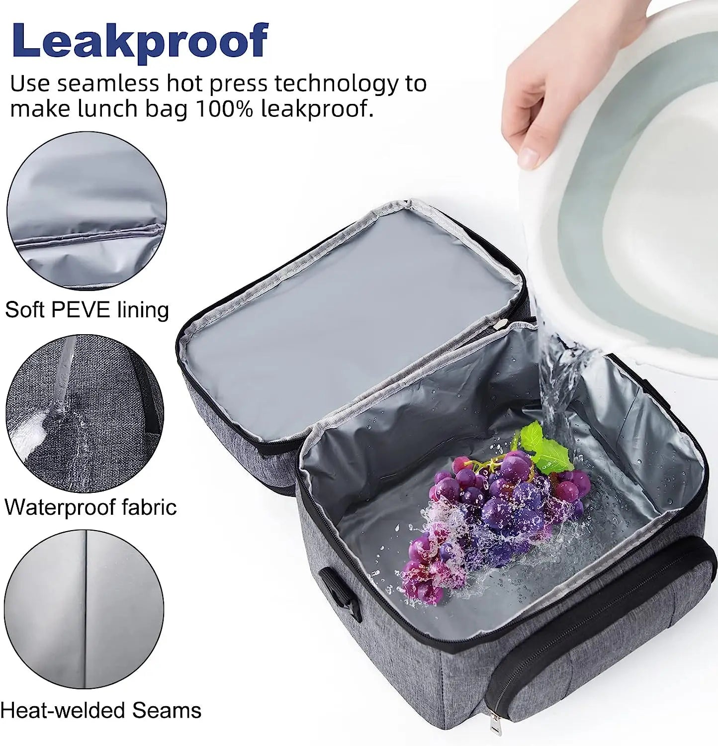 2: [leakproof heat insulation] The exterior is made of high-density waterproof and stain-proof Oxford fabric, durable. Thickened food grade PEVA waterproof lining without splicing to prevent leakage. PEVA lining is smooth and easy to wipe clean. The built-in 8mm EPE foam provides excellent protection for your containers, food and beverages. The lining is made of insulation material that keeps food warm or cold, keeps food cold/warm/fresh for hours, and can also hold ice cubes.