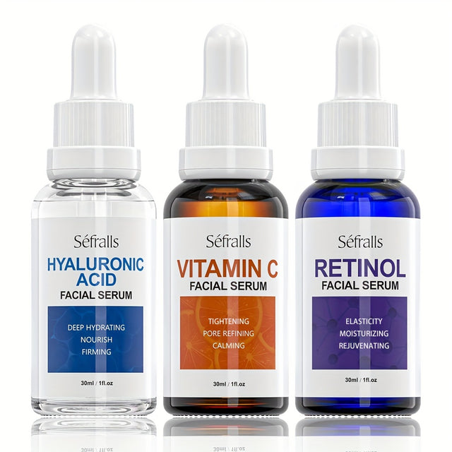 Seffralls Hyaluronic Acid VC Essence Set 1.01oz*3pcs with Vitamin-C Vitamin-A and Hyaluronic Acid Serum for Glistening, Firming Hydrating Dry Skin Serum for Firm Gift Festival Travel Set