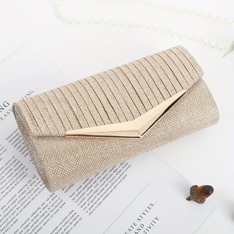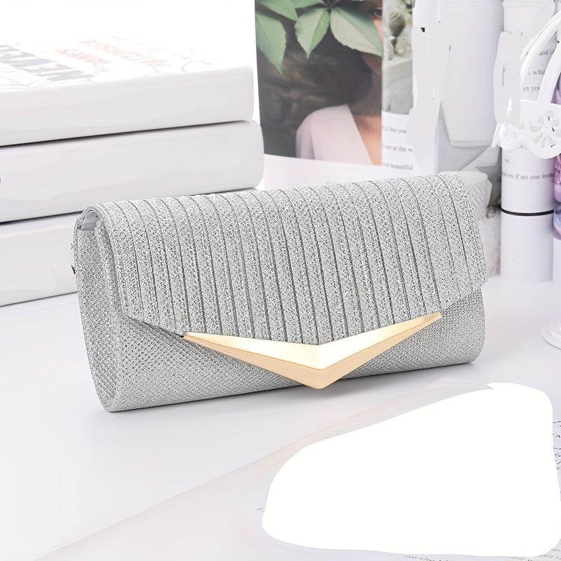 Sequin Ruched Evening Bag, Metal Decor Flap Prom Purse, Glitter Clutch Bag For Wedding Party Best Gifts for Carnaval