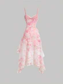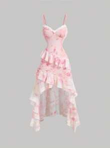 Women's Romantic Vintage Lace Dress With Ruffle Hemline, Bodycon Dress,Dress Party, Floral Dress,Summer Dress
