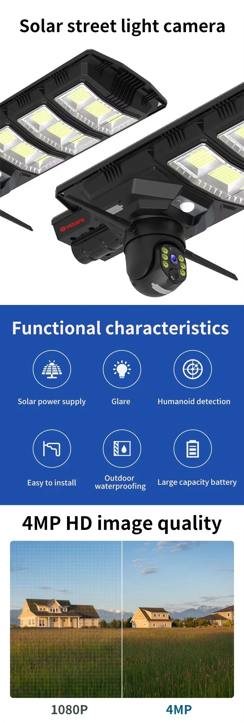 Smart All-in-One 300W Solar Street Light CCTV camer Waterproof LED 60W ABS Body Path Garden Road Battery Powered DC Supply