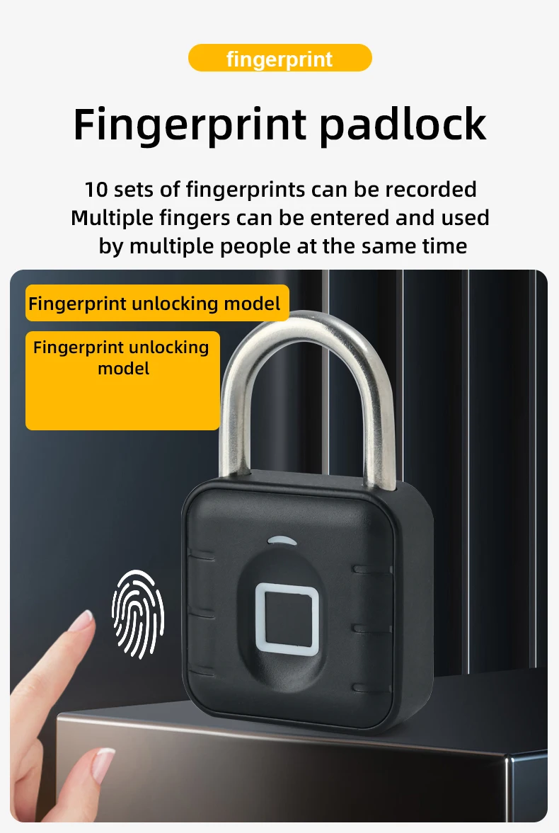 Smart Door Pad Lock Electronic Fingerprint Padlock Keyless USB Rechargeable Quick Unlock Zinc alloy Metal Self Developing Chip