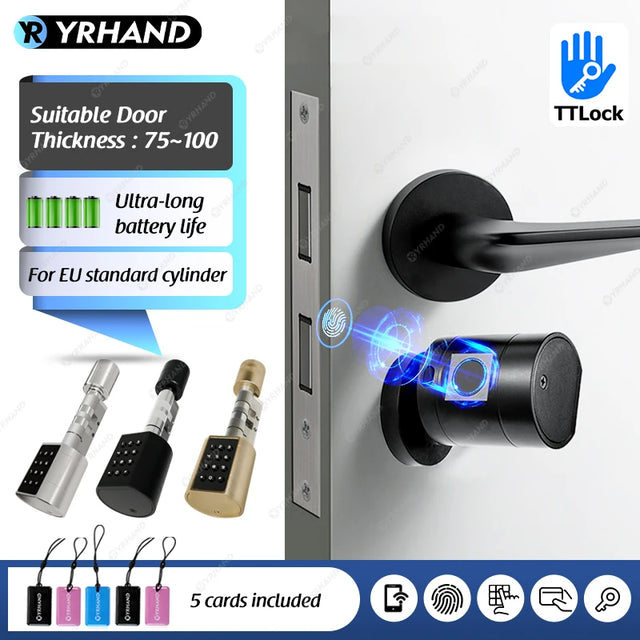 Smart Euro Cylindrical Door Lock ttlock app Keyless Security Entry Mechanical Key Waterproof fingerprint door lock For home