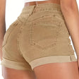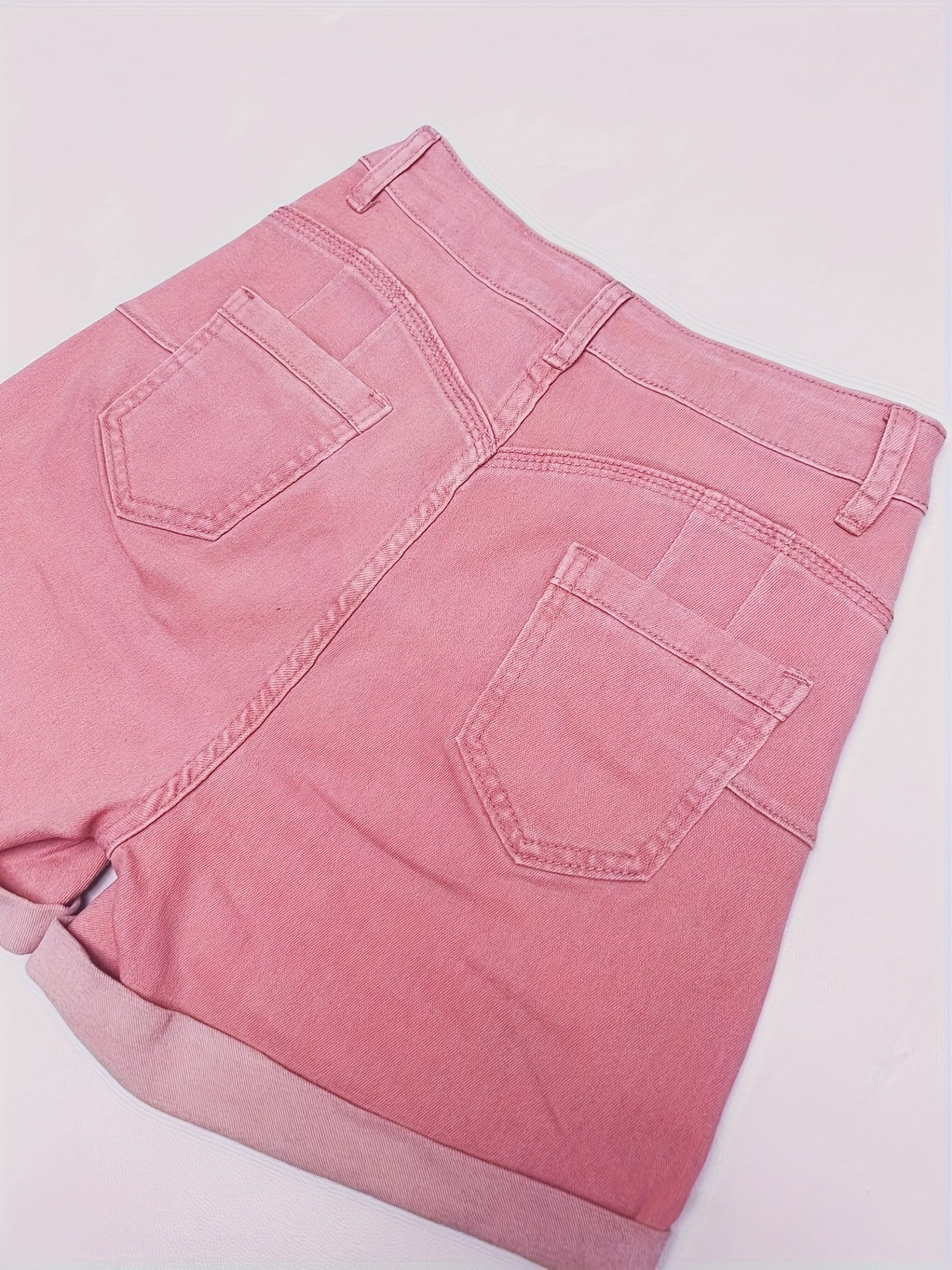 Stretchy High-Rise Denim Shorts for Women - Casual Geometric-Pattern with Roll-Up Hem, Easy Care & Summer-Ready
