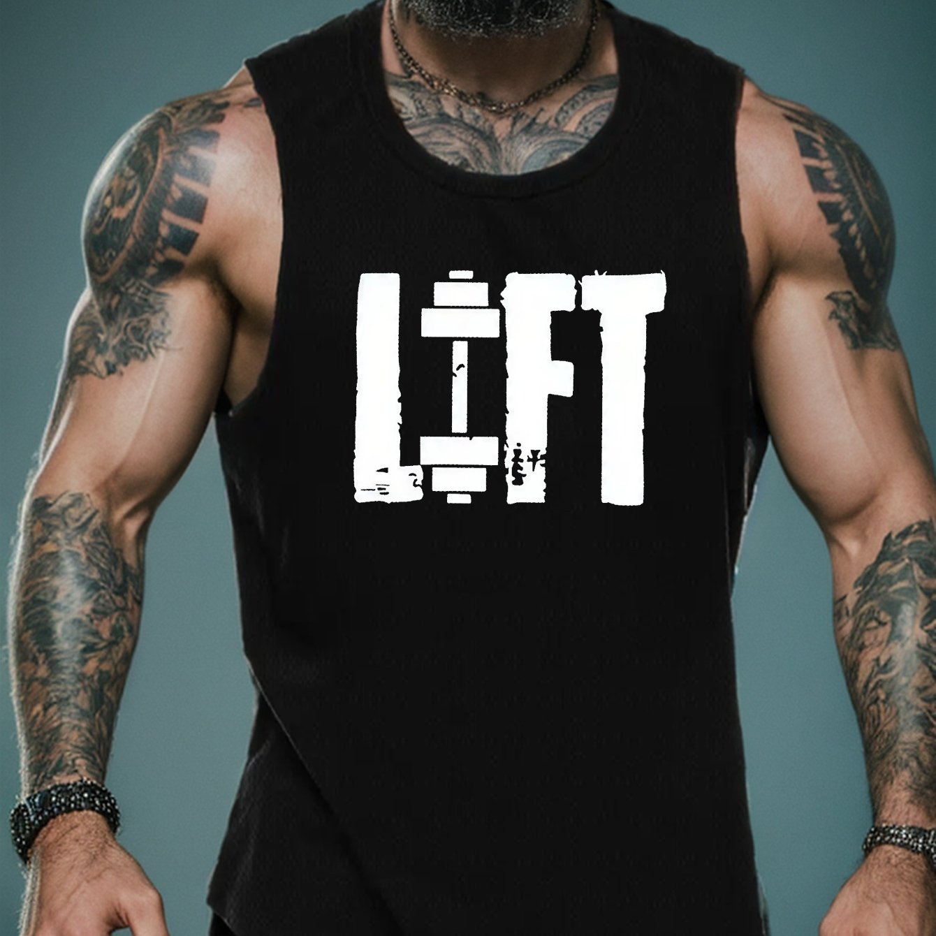 Summer Quick-Dry Geometric-Pattern Tank Tops for Men - Breathable, Moisture-Wicking, Athletic Fit, Crew Neck, Polyester, Machine Washable, Regular Fit, Casual Wear for Running, Training, Gym, and Bodybuilding