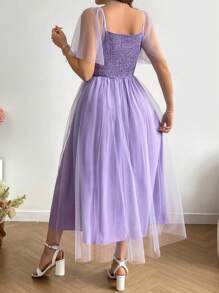 Sunnyshic Plus Size Solid Color Floral Layered Hem Camisole Dress