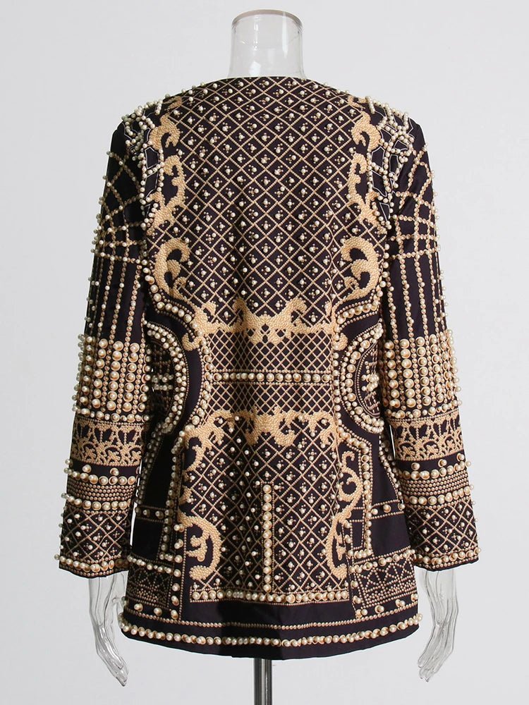 TWOTWINSTYLE High Street Blazer For Women V Neck Long Sleeve Embroidered Flares Colorblock Blazers Female Clothing Fashion Style
