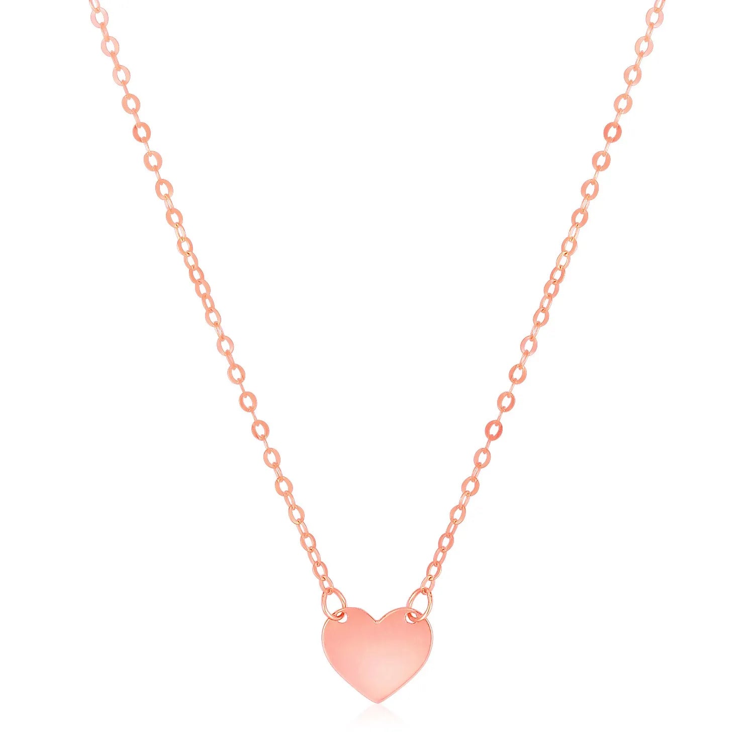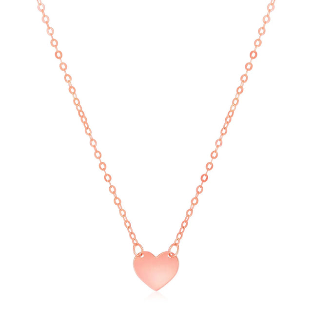" A classically simple polished heart hangs beautifully from fine chain in this exquisite 14k rose gold necklace. Necklace is 18 inches long.
