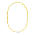 " This stunning and bold 14k yellow gold paperclip chain features one focal link covered with luminous diamonds. Necklace is 17 inches long. Total weight of diamonds is 31ct.