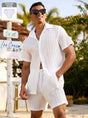 VDAYZ Men's Solid Color Short Sleeve Shirt And Shorts Casual Beach Set