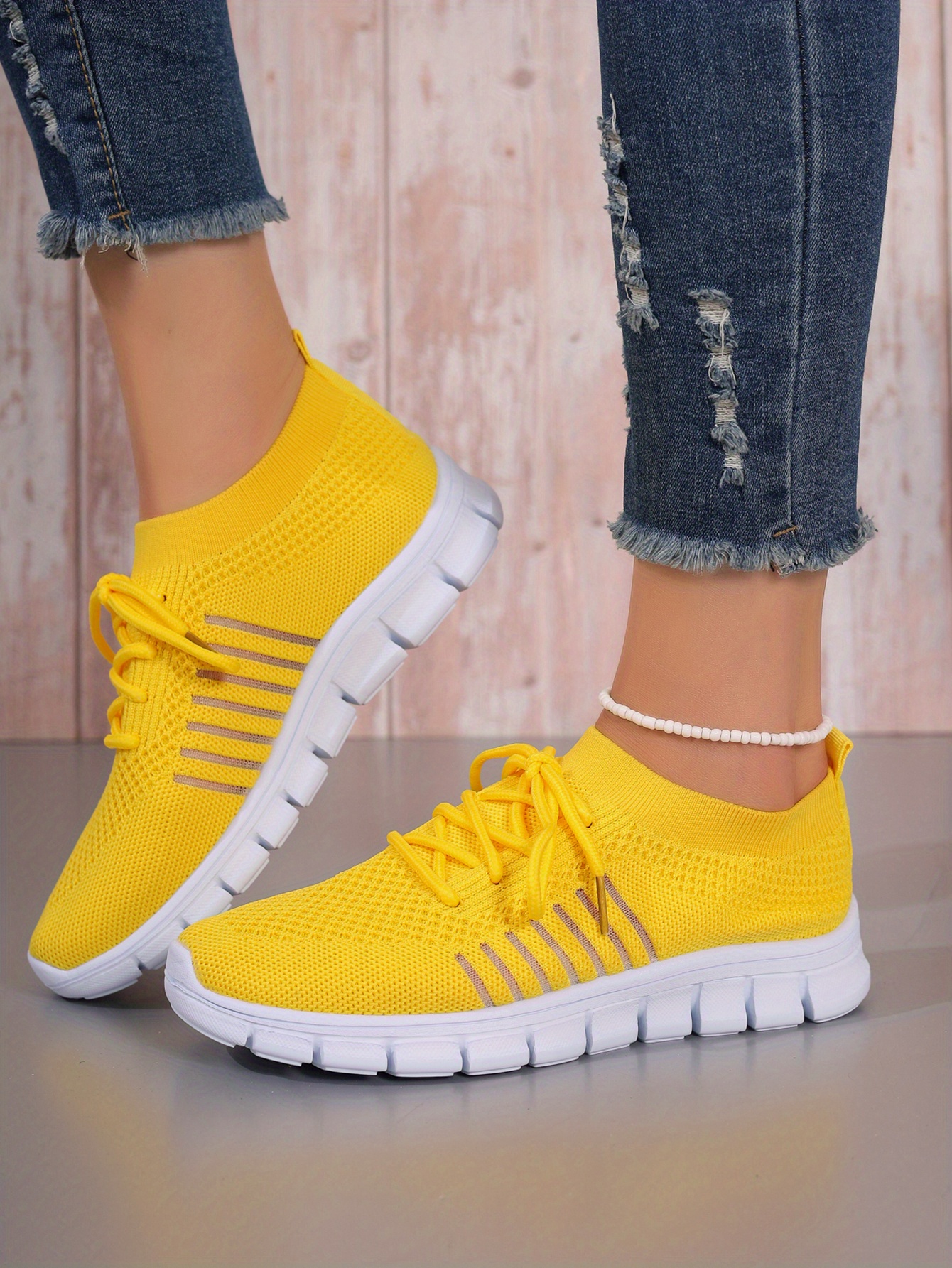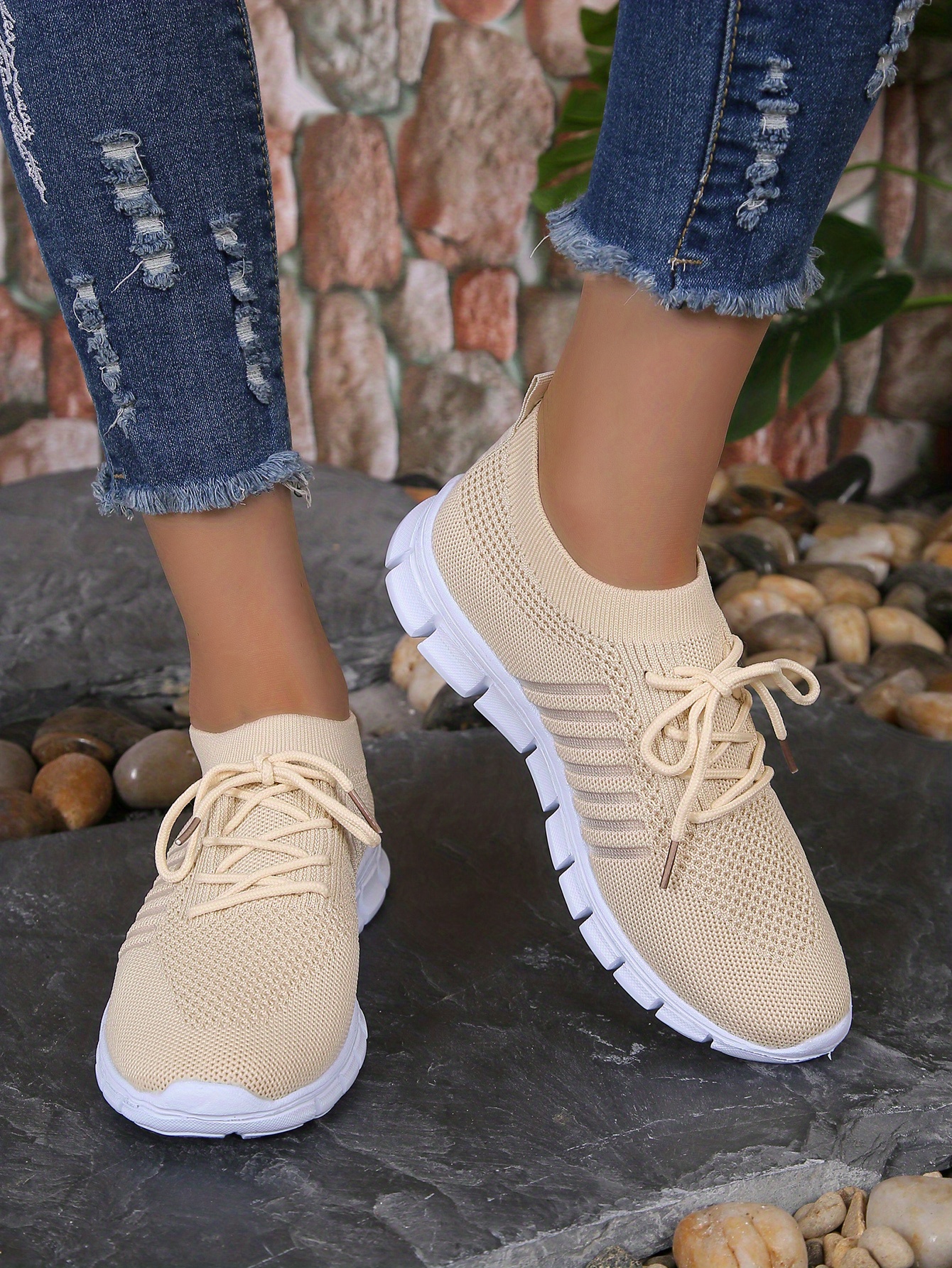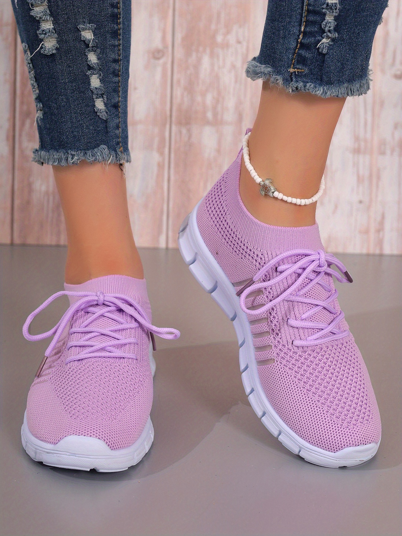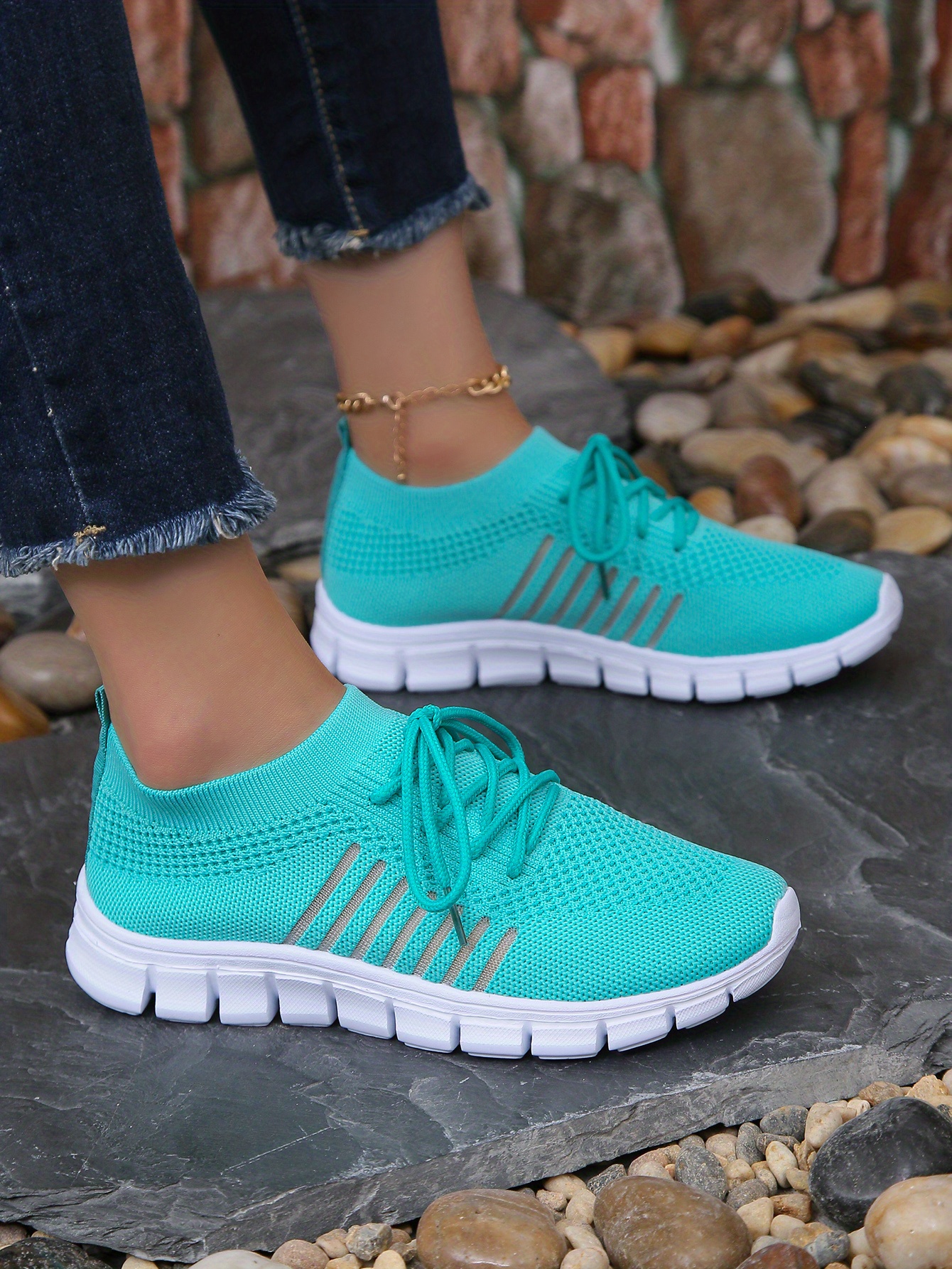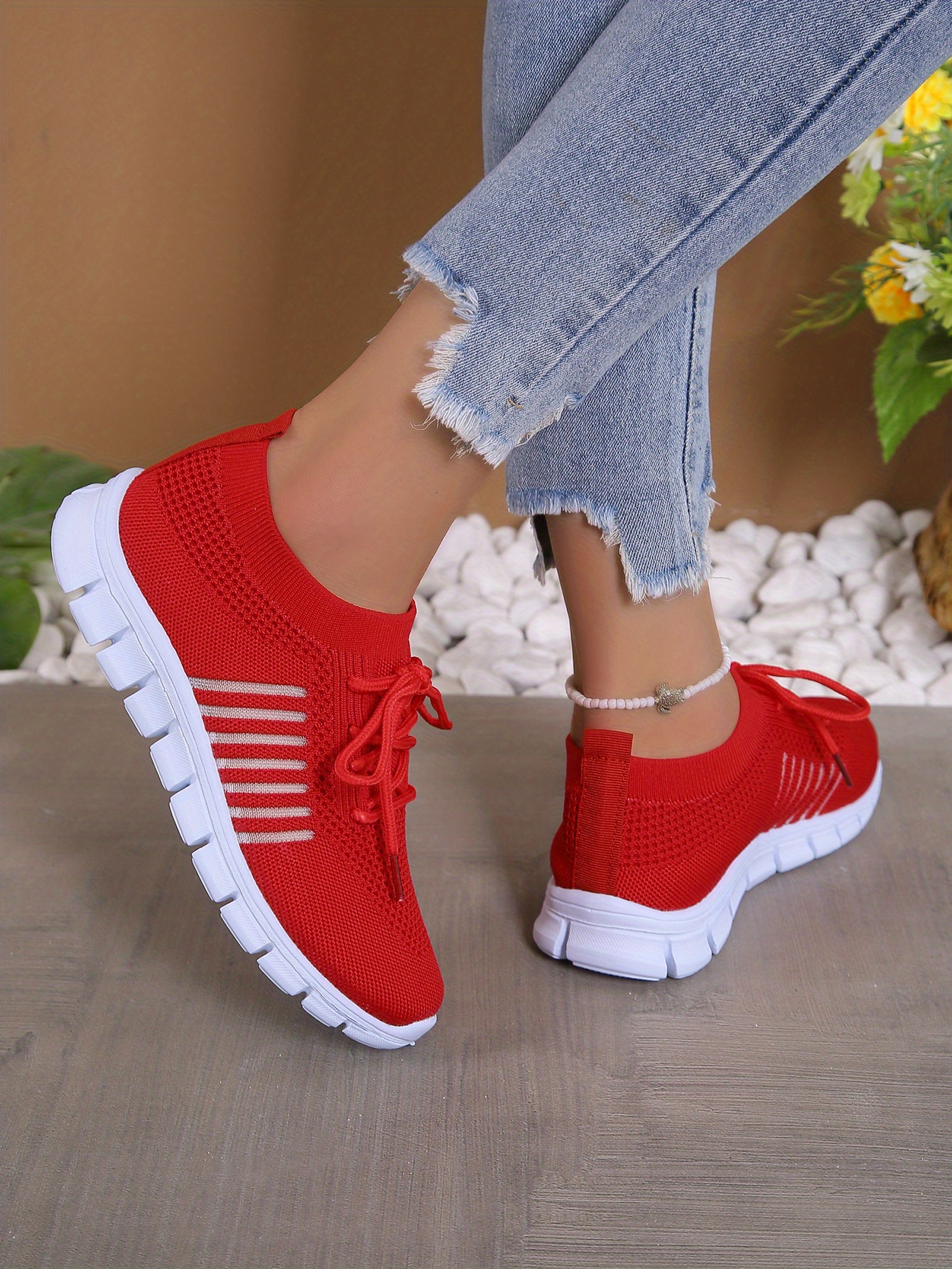 Womens All-Season Lace Up Knit Sneakers - Breathable Mesh Upper, Comfortable Fabric Insole, EVA Sole, Versatile Solid Color Running Shoes for Casual Wear