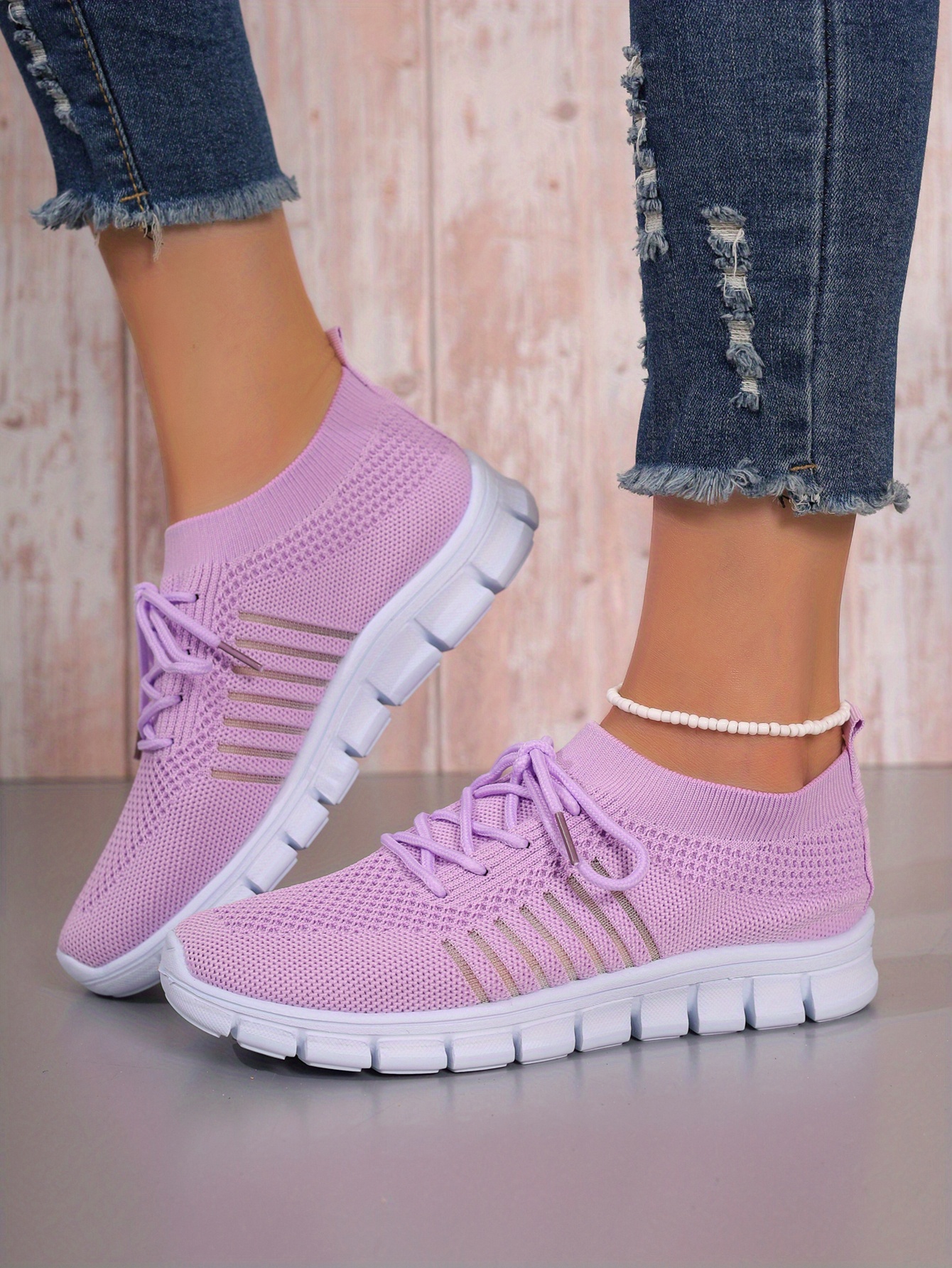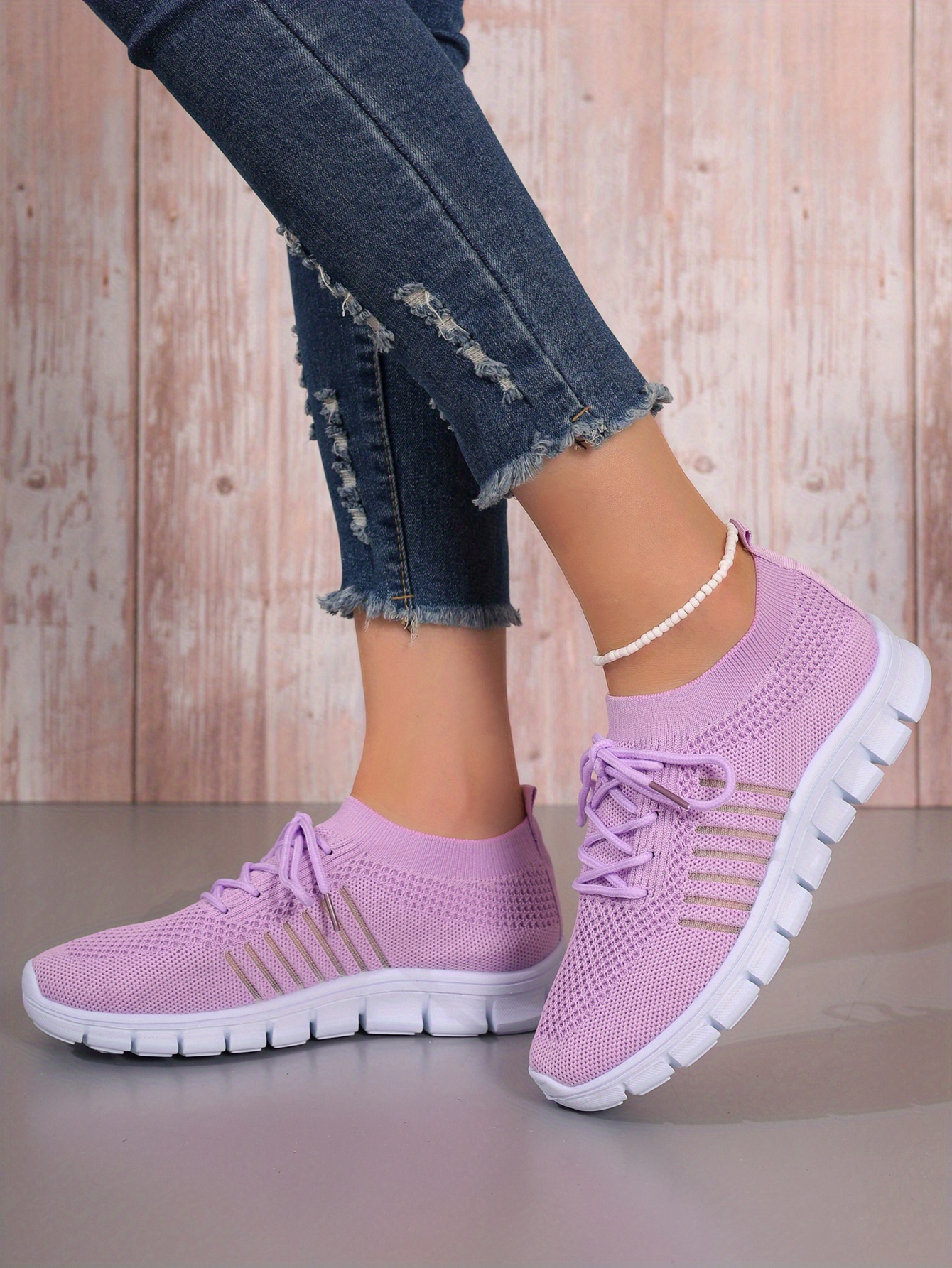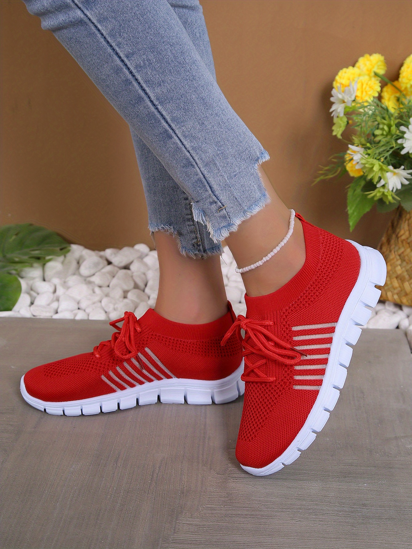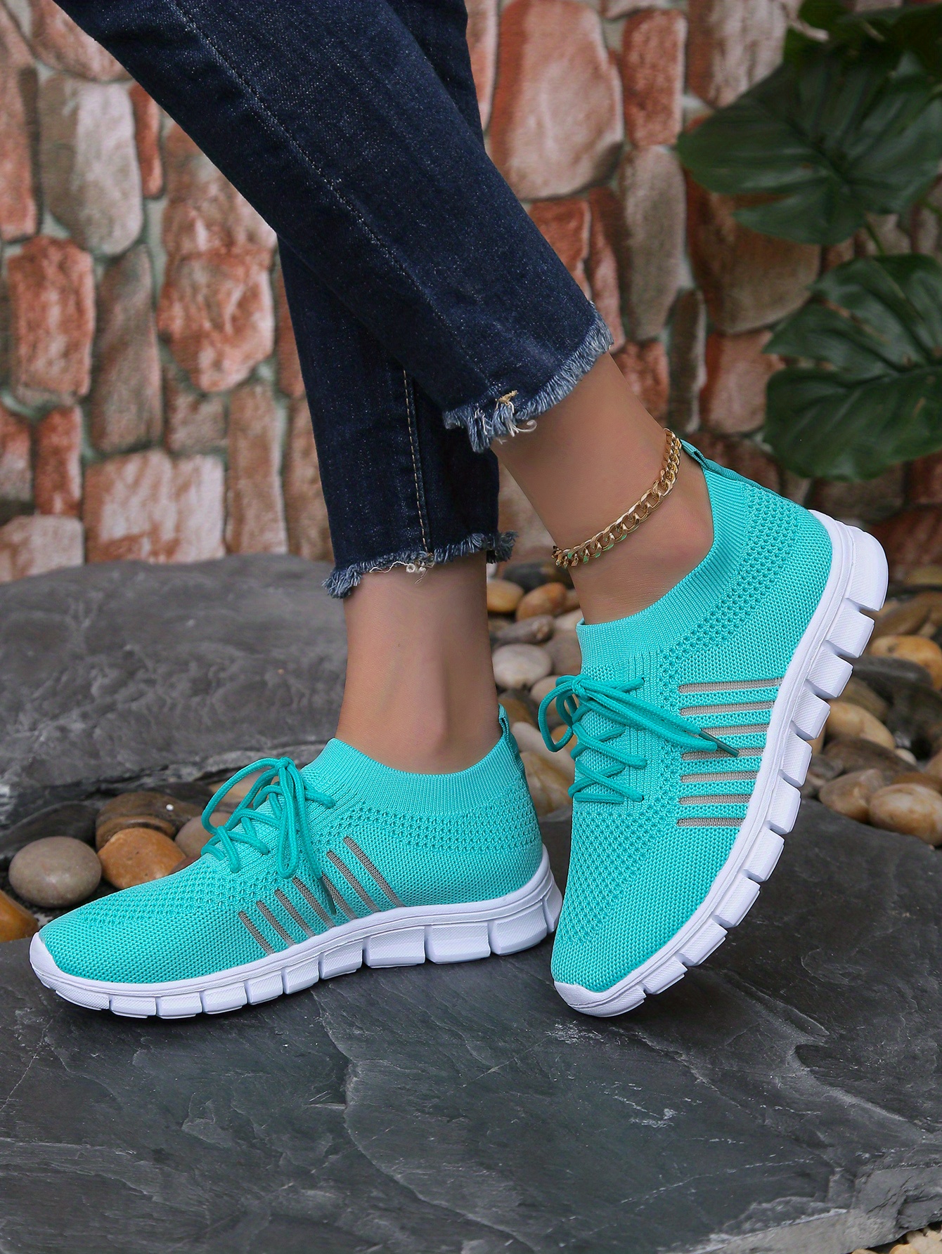 Womens All-Season Lace Up Knit Sneakers - Breathable Mesh Upper, Comfortable Fabric Insole, EVA Sole, Versatile Solid Color Running Shoes for Casual Wear