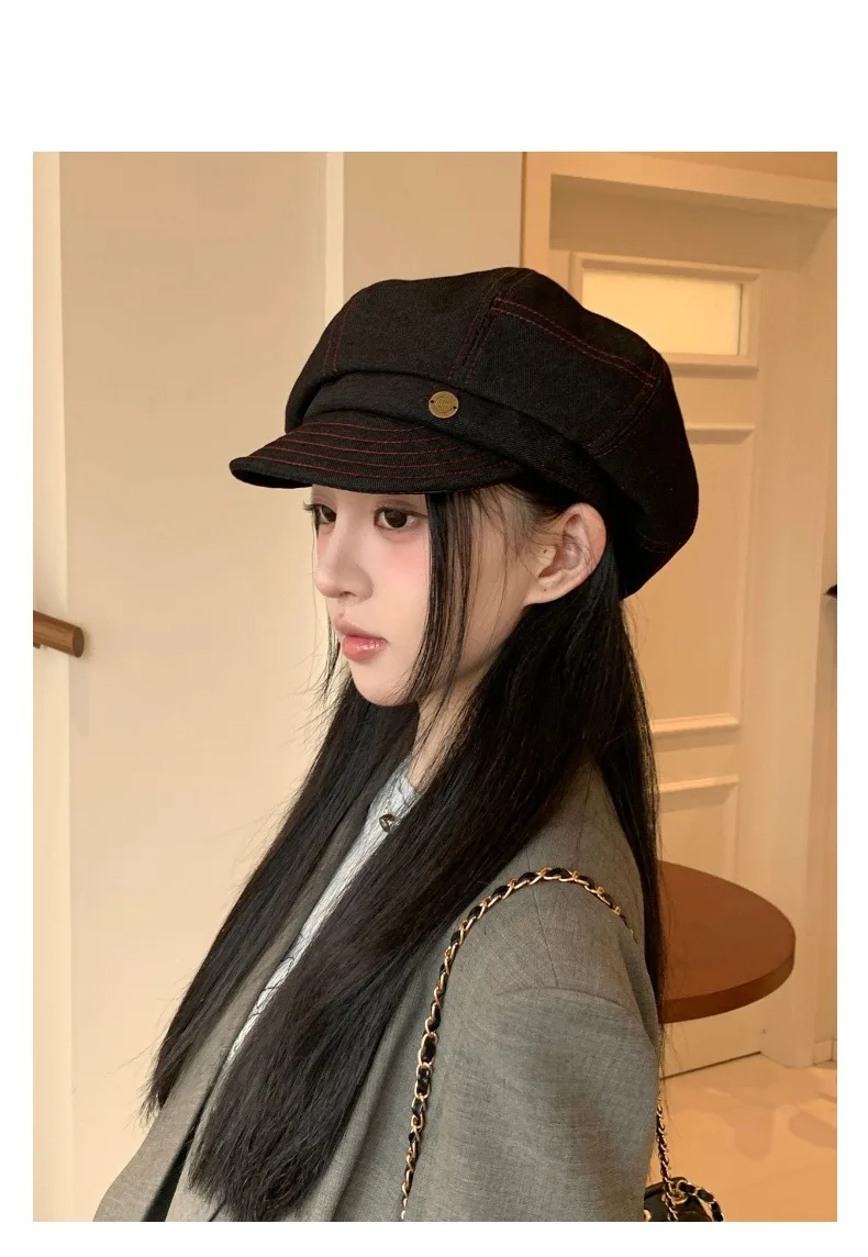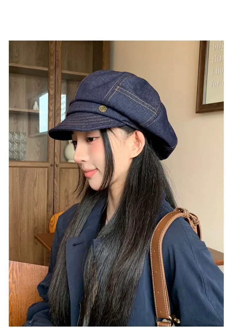 Women's Berets Korean Retro Casual Simple Versatile Fashionable Sweet Denim Berets Artistic High-quality Painter's Caps For Girl