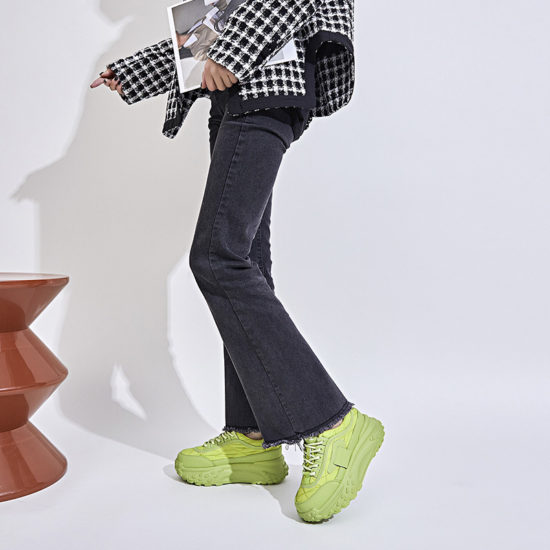 Women's Simple Pure Color Thick Bottom Running Shoes, Soft Comfortable Lace Up Sneakers, Versatile Non-slip Sports Shoes - US 8 / Green is backordered and will ship as soon as it is back in stock.