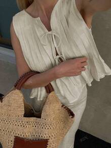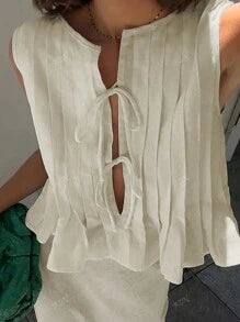 Women's Sleeveless Crew Neck Casual Pleated Tie-Up Crop Top And Low Waist Mermaid Maxi Skirt 2 Pieces Set Skirt.*