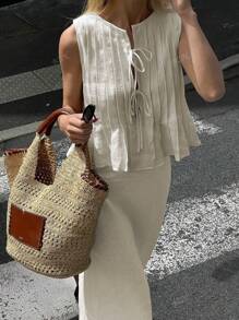 Women's Sleeveless Crew Neck Casual Pleated Tie-Up Crop Top And Low Waist Mermaid Maxi Skirt 2 Pieces Set Skirt.* is backordered and will ship as soon as it is back in stock.