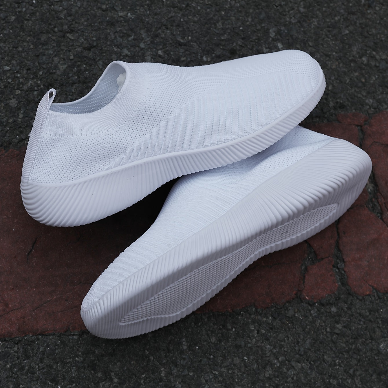 Women's Solid Color Sneakers, Breathable Flying Woven Outdoor Shoes, Lightweight Low Top Running Shoes plus size - White / US 5.5 is backordered and will ship as soon as it is back in stock.