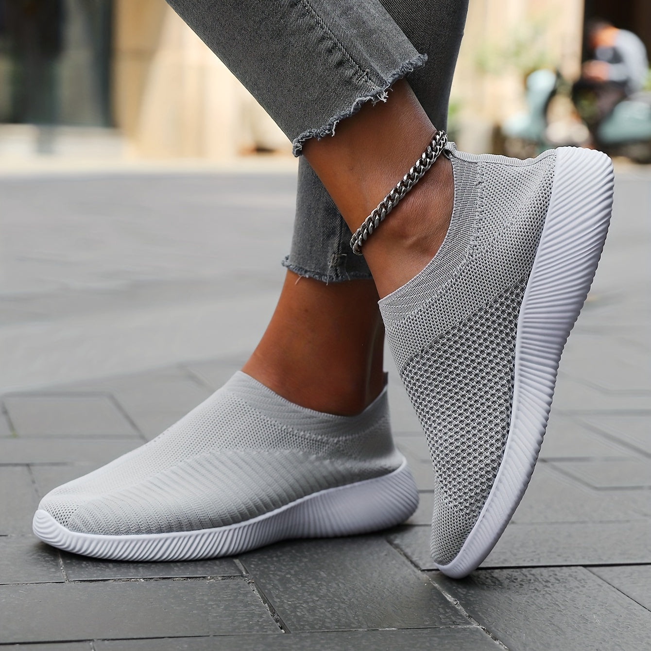 Women's Solid Color Sneakers, Breathable Flying Woven Outdoor Shoes, Lightweight Low Top Running Shoes plus size